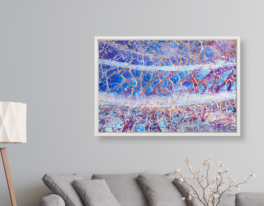 Een giclée op dibond wordt los of ingelijst geleverd. Bij een dibond zonder lijst monteren we aan de achterzijde van de plaat een aluminium u-profiel als ophangprofiel. Een voordeel is dat het kunstwerk ongeveer 1,5 cm van de muur af komt waardoor het lijkt het alsof het zweeft.