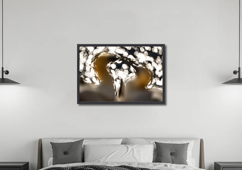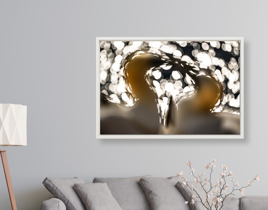 Een giclée op dibond wordt los of ingelijst geleverd. Bij een dibond zonder lijst monteren we aan de achterzijde van de plaat een aluminium u-profiel als ophangprofiel. Een voordeel is dat het kunstwerk ongeveer 1,5 cm van de muur af komt waardoor het lijkt het alsof het zweeft.